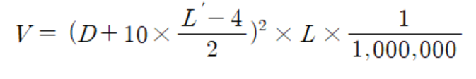 • L’ = 원목 길이로서 m단위에 의한 수치 중 1m미만의 끝수를 끊어버린 길이