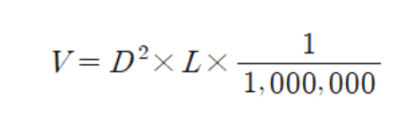국산재 6m미만의 재장에 적용하는 공식에 π/4 (0.785)를 곱하여 구한다.